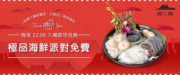 【岩漿火鍋經國店、公益店】宵夜限定-極品海鮮派對(價值$1299免費兌換)